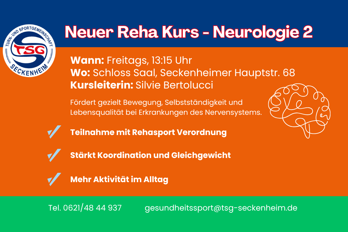 Mit zahlreichen Aktivitäten und einem breit gefächerten Angebot an Sportarten für alle Altersgruppen ist die TSG Seckenheim in der Metropolregion einer der größten Sportvereine. Durch eine Mitgliedschaft haben Sie die Möglichkeit sich in mehr als 14 verschiedenen Freizeit- und Wettkampfabteilungen, der Fitness- und Gesundheitssport-Abteilung sowie der KiSS (Kindersportschule) sportlich zu betätigen. Bei so einem großen Angebot ist für jeden was dabei!
