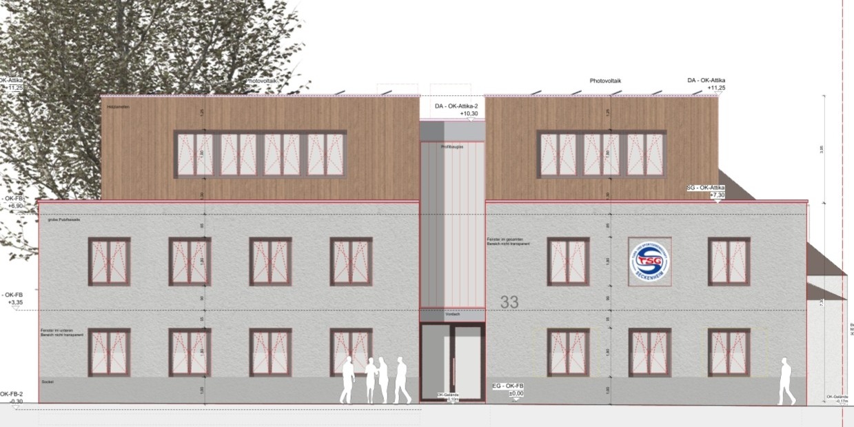 Aktuell arbeiten wir vor allem an zwei großen Vorhaben: Zum einen an der Umnutzung und Erweiterung unserer vereinseigenen Turnhalle (Seckenheimer Hauptstr. 33). Hier sollen zusätzliche, moderne und barrierefreie Funktionsräume entstehen – insbesondere für Reha-, Gesundheits- und Seniorensport sowie Angebote für Kinder und Jugendliche.