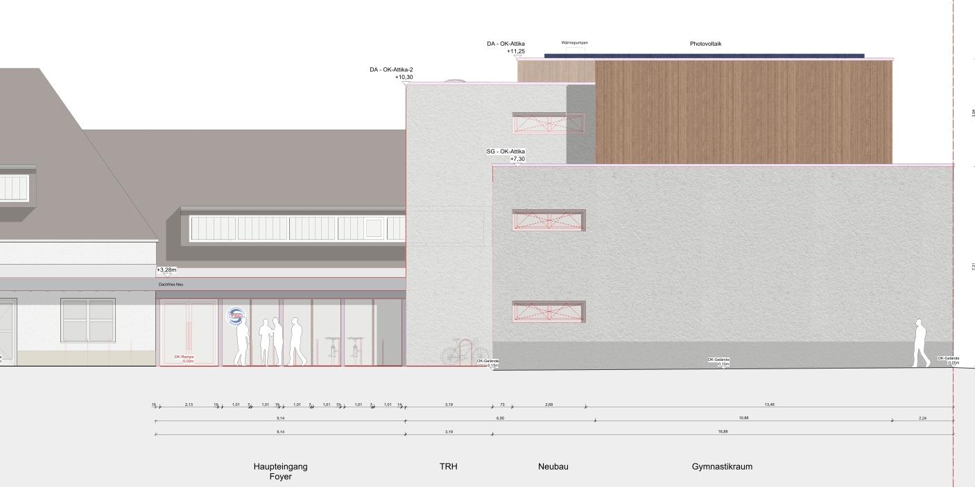 ein einzigartiger Ort für Bewegung und Gemeinschaft. Hier werden dringend benötigte Sporträume geschaffen, den der Verein stößt bereits jetzt an seine Grenzen: Zwei Räume mit je 150m², ein Raum mit 100m² und ein weiterer mit 80m² bieten optimale Bedingungen für Kleingruppentraining. Im großen Erdgeschossraum finden REHA- und Präventionssport ihren Platz, während oben Fitness- und Powerkurse ein neues Zuhause bekommen. Der Pavillon lädt zu Entspannungs- und Beweglichkeitskursen ein, und im kleinsten Raum entsteht eine Spiellandschaft für Kinder – perfekt für Kindergeburtstage und Baby-Kurse. Der neue Vereinsraum mit 75m² ist die Begegnungsstätte des TSG Sportforums: Hier kommen Mitglieder nach dem Sport zusammen. Profitieren von diesem Raum wird auch das Ganztagsangeboten und Frühbetreuung für Kinder und Jugendliche. Sie alle füllen das Gebäude täglich von früh bis spät mit Leben.