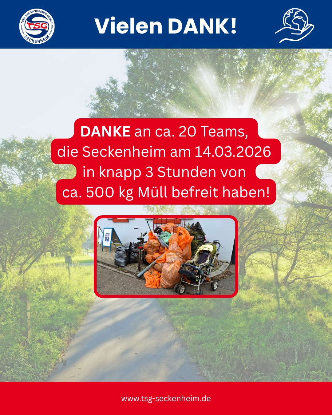 Sport, Gemeinschaft und Verantwortung gehören für uns zusammen. Deshalb setzen wir beim Cleanup am 14. März 2026 rund ums Seckenheimer Schloss wieder ganz bewusst auf Teamwork 💚 wer mithelfen kann, ist herzlich willkommen!