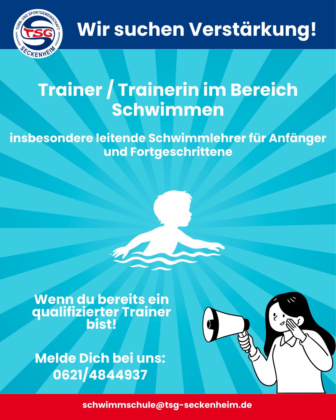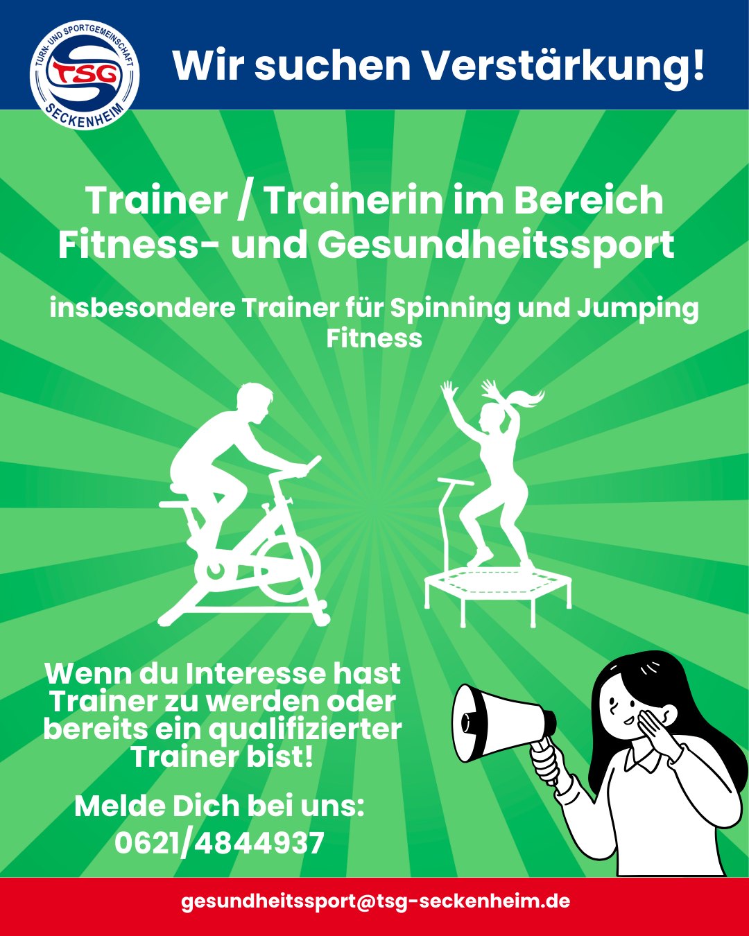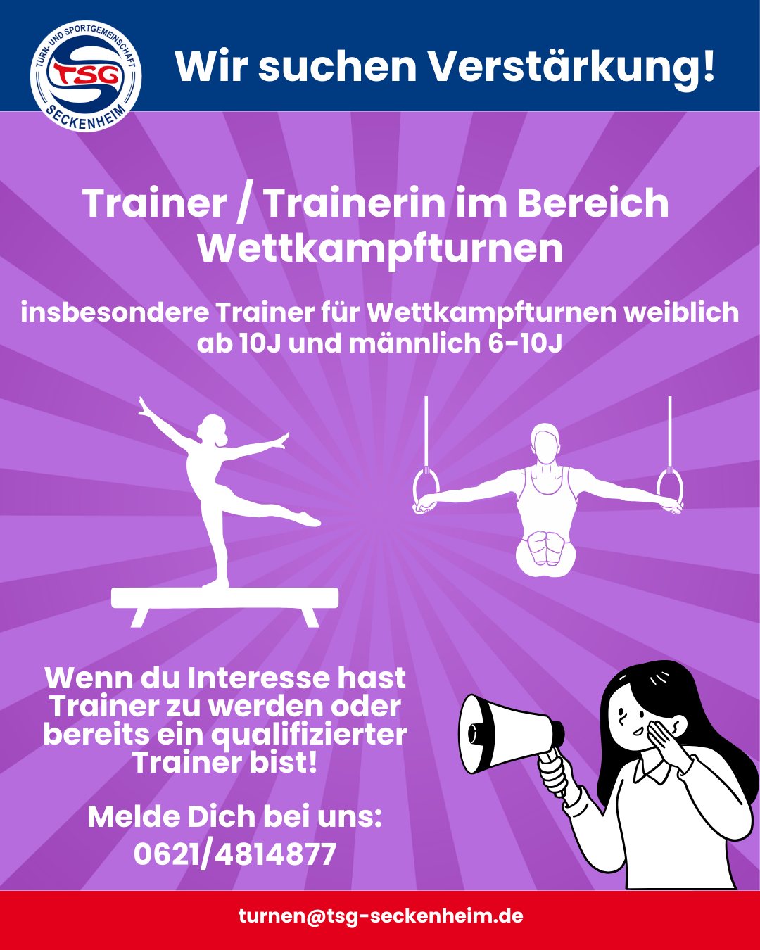 Die TSG Seckenheim sucht engagierte Trainerinnen und Trainer – bei Interesse einfach bei uns melden!