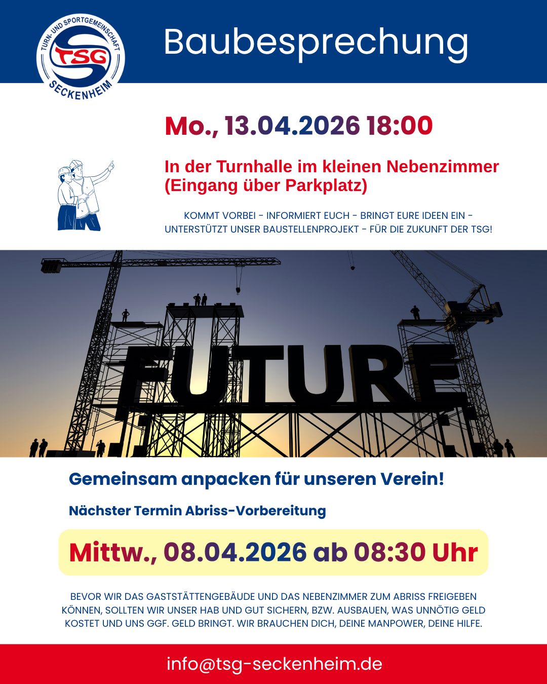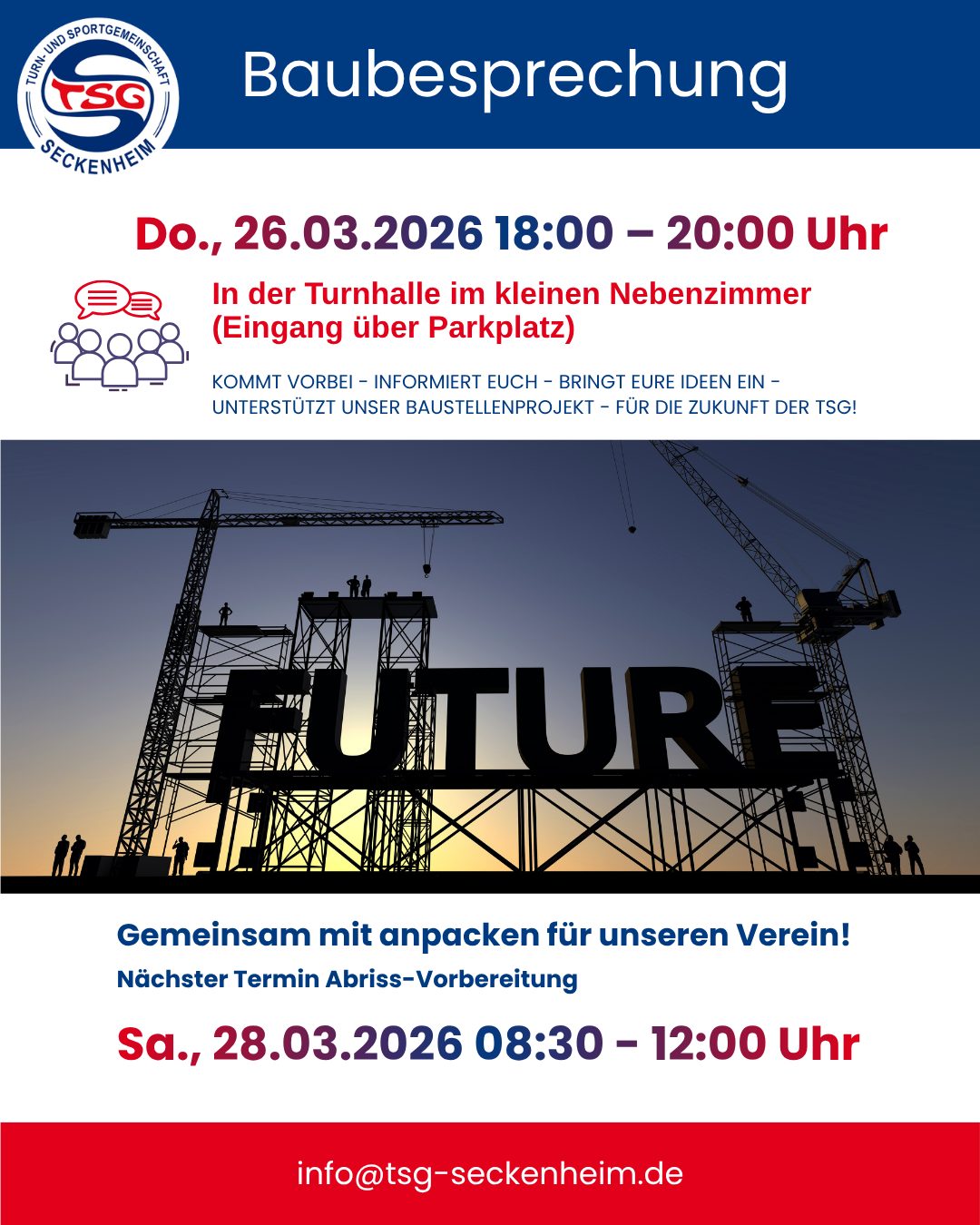 🗓️ In Kürze steht unsere außerordentliche Mitgliederversammlung an! Alle TSG-Mitglieder sind herzlich eingeladen, dabei zu sein und gemeinsam über den neuen Satzungsentwurf abzustimmen.