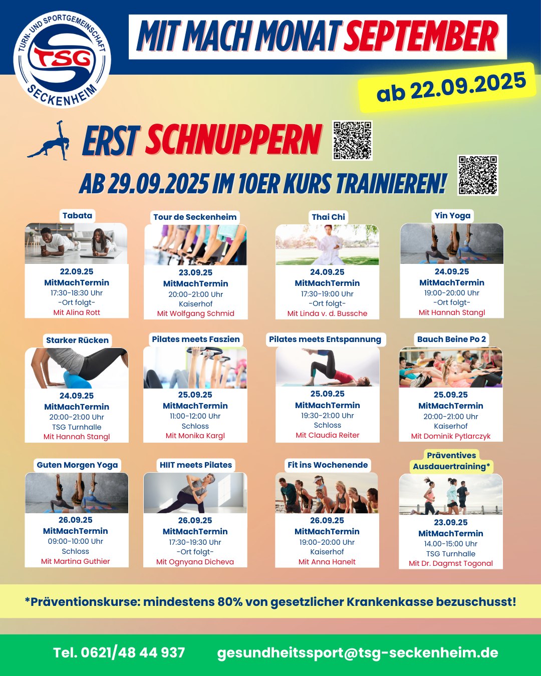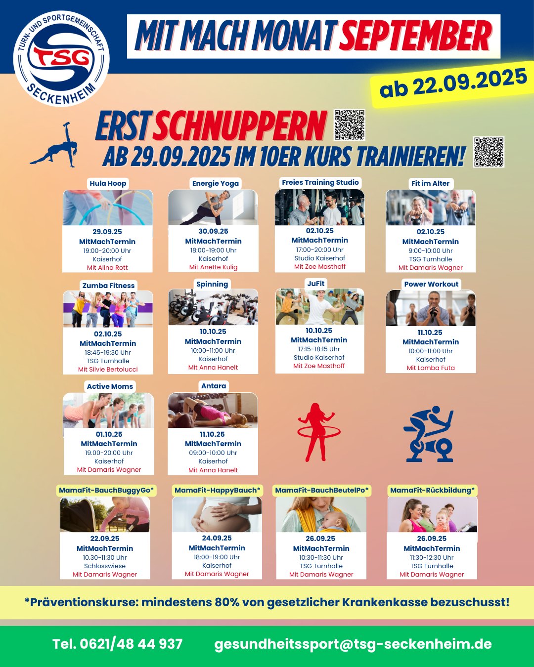 ✨ Am 22. September 2025 startet unser "MitMachMonat September": es gibt tolle Kursstunden zum kostenfreien Schnuppern, damit jeder sein Lieblingsangebot finden kann.✨