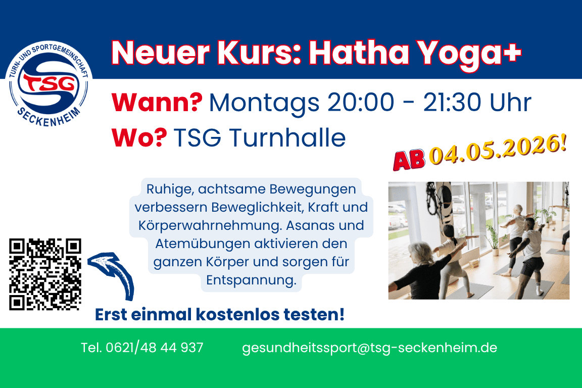 Der Kurs Hatha Yoga+ richtet sich an Erwachsene, die durch ruhige und bewusste Bewegungen ihre Beweglichkeit, Kraft und Körperwahrnehmung verbessern möchten. Durch eine Kombination aus Körperhaltungen (Asanas), Atemübungen und sanften Übungsabläufen wird der ganze Körper aktiviert und gestärkt. Die Stunden bieten einen wohltuenden Ausgleich zum Alltag.