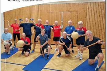 Die TSG Seckenheim hat sich beim Badischen Turner bund für die Kampagnenwelle 2024 beworben und un sere Sportgruppe „Männerfitness 50+“ hat gewonnen: eine Anzeige, ein redaktioneller Beitrag in „Seckenheim Rheinau Nachrichten“ voraussichtlich im November 2024, einen Bauzaunbanner sowie 10 Trainingsshirts - alles kostenfrei für die Vereinsnutzung! Wir konnten unsere ambitionierten „Männer fitness 50+“-Sportler schnell überzeugen und das Team-Foto knipsen. So waren wir bereits bei den ersten Vereinen im BTB dabei, die ihr Anzeigenmotiv erhielten. Wir sagen: su per und freuen uns, wenn diese tolle Sportgruppe auch weitere Mitsportler findet. Renate Estenfelder